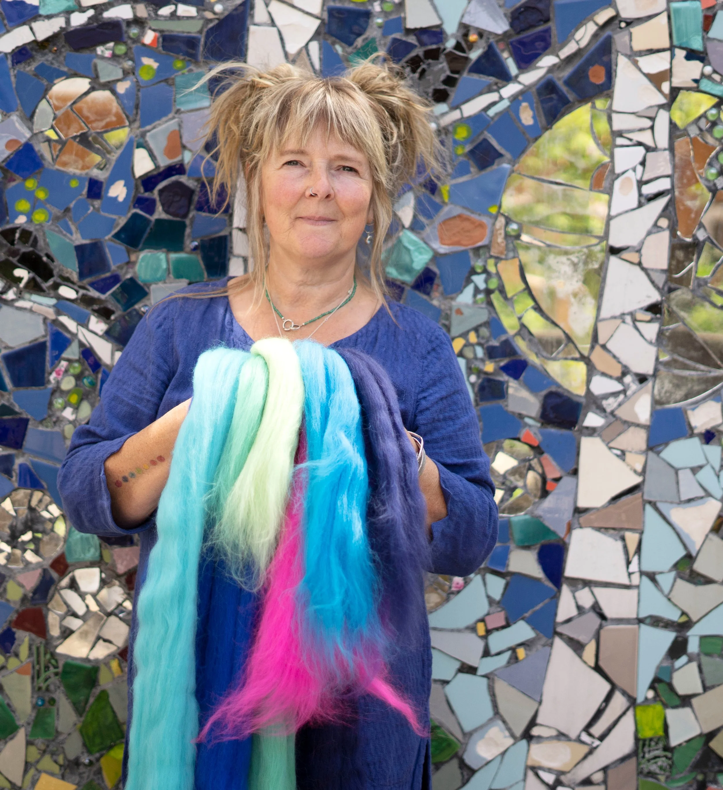 Using merino fleece fibres and stitch in place of brush and paint she creates ‘felted paintings’ of startling vibrancy and depth where she combines aspects of the traditional craft of felt-making with painting in a magical way. It is a fascinating, absorbing process which requires a fine balance between spontaneity and control, an element she particularly enjoys. Moy's passion is for colour and her work asserts this with luminous vitality. By using fibres in such a painterly way she has developed a unique coupling of a traditional craft within a fine art application, creating a very personal and innovative approach to visual expression. She is regarded as the leading authority of this art form and has had three books published to date, selling 60,000 copies worldwide. She regularly travels the world to teach along with offering online courses, workshops and retreats from her studio.
